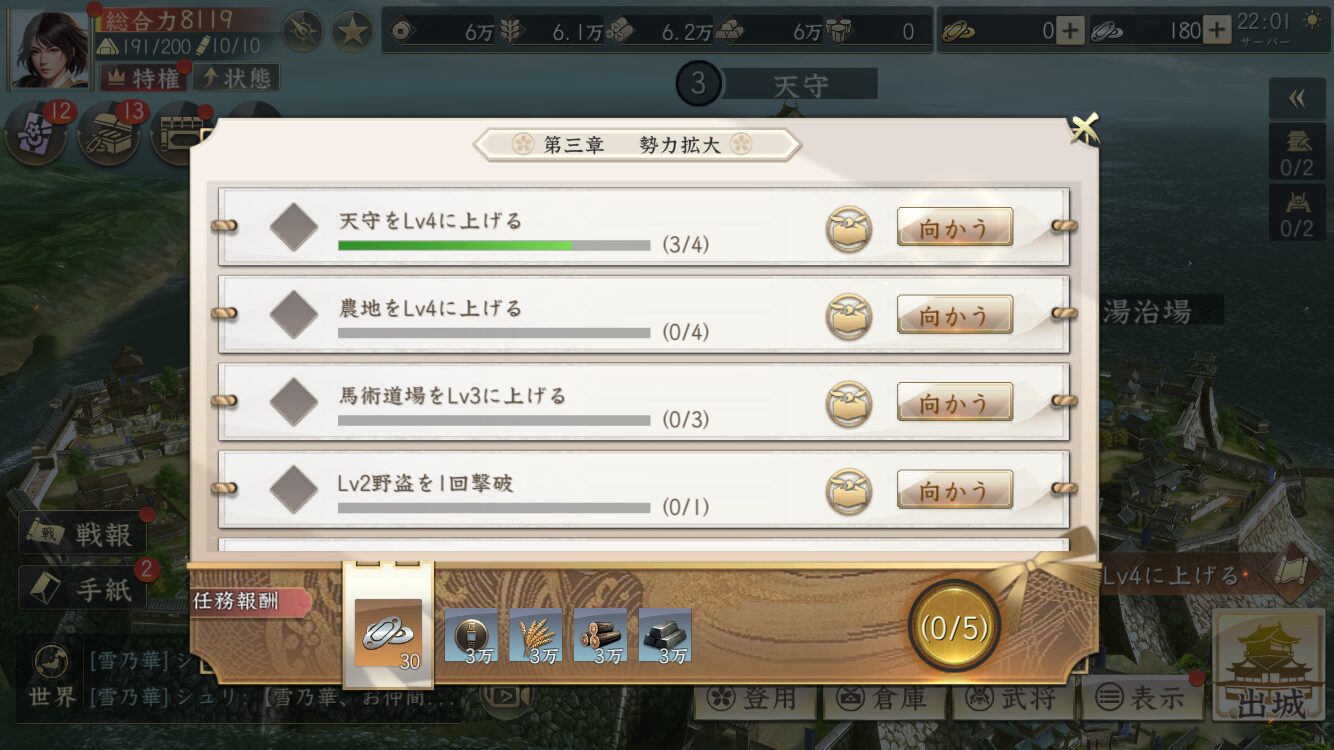 また、任務(ミッション)をこなしていくと、武将の強化や